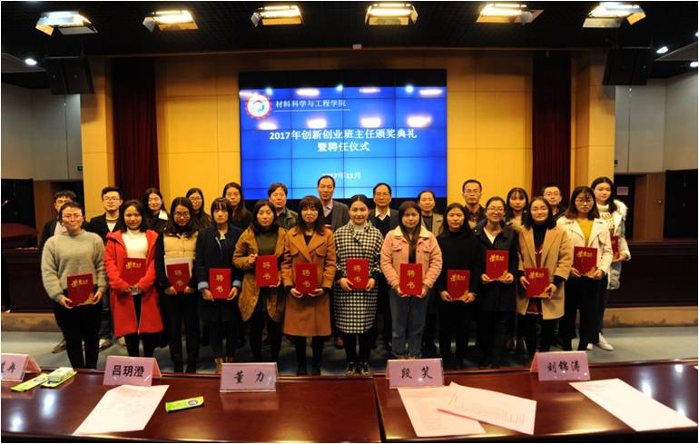 11月23日晚,陕西科技大学材料科学与工程学院2017年创新创业班主任颁奖典礼暨聘任仪式在图书馆一楼会议室隆重举行。500余名本科生、2015级、2016级创新创业班主任共聚一堂,一起迎接我院创新创业教育的新篇章。
